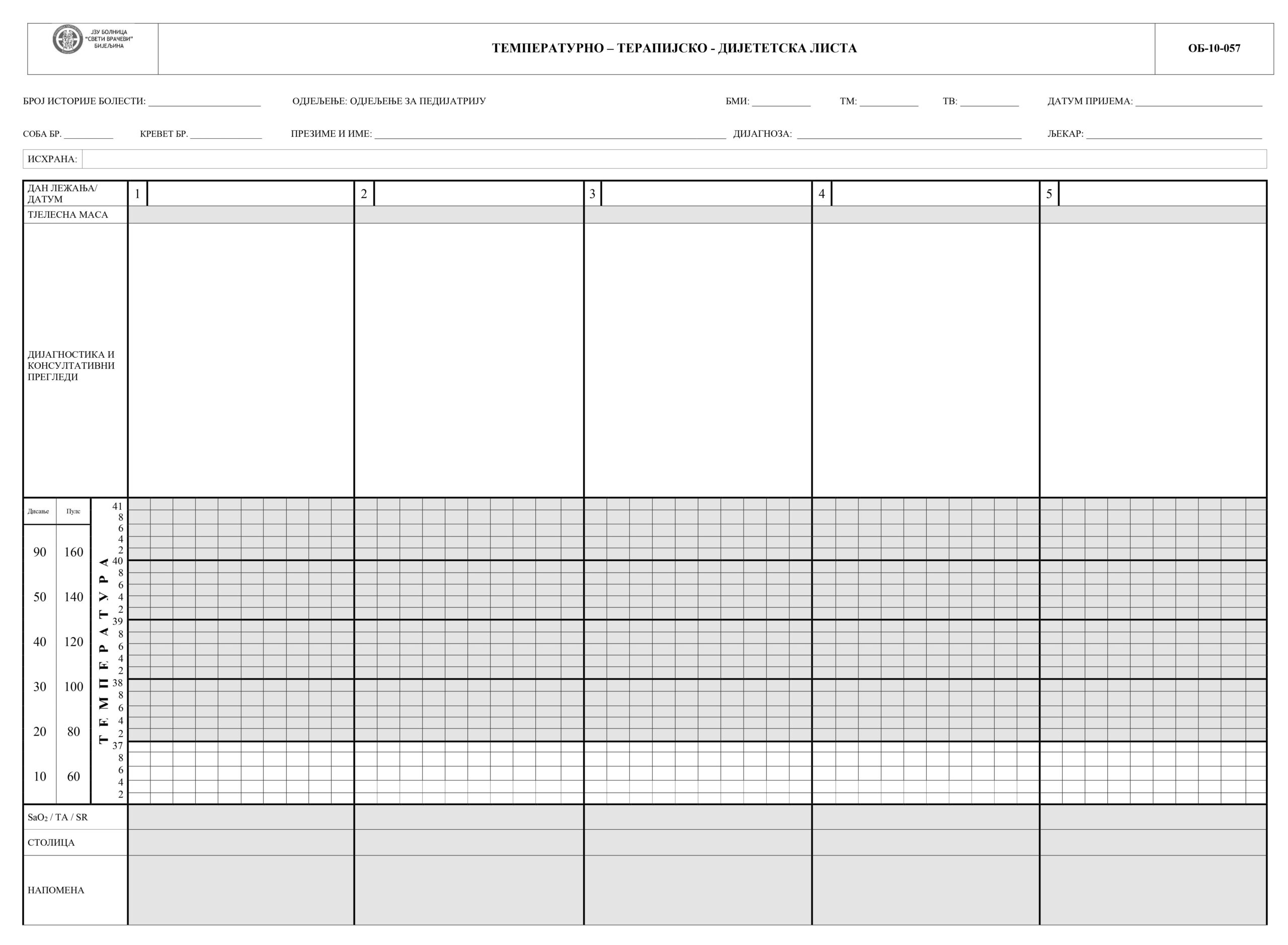 Obavještenje: Dana 09.08.2023. godine uvodi se u primjenu nova verzija obrasca OB-10-057 Temperaturno – terapijsko dijetetska lista – djecija, strana 1 i OB-10-057 Temperaturno – terapijsko dijetetska lista – djecija strana 2